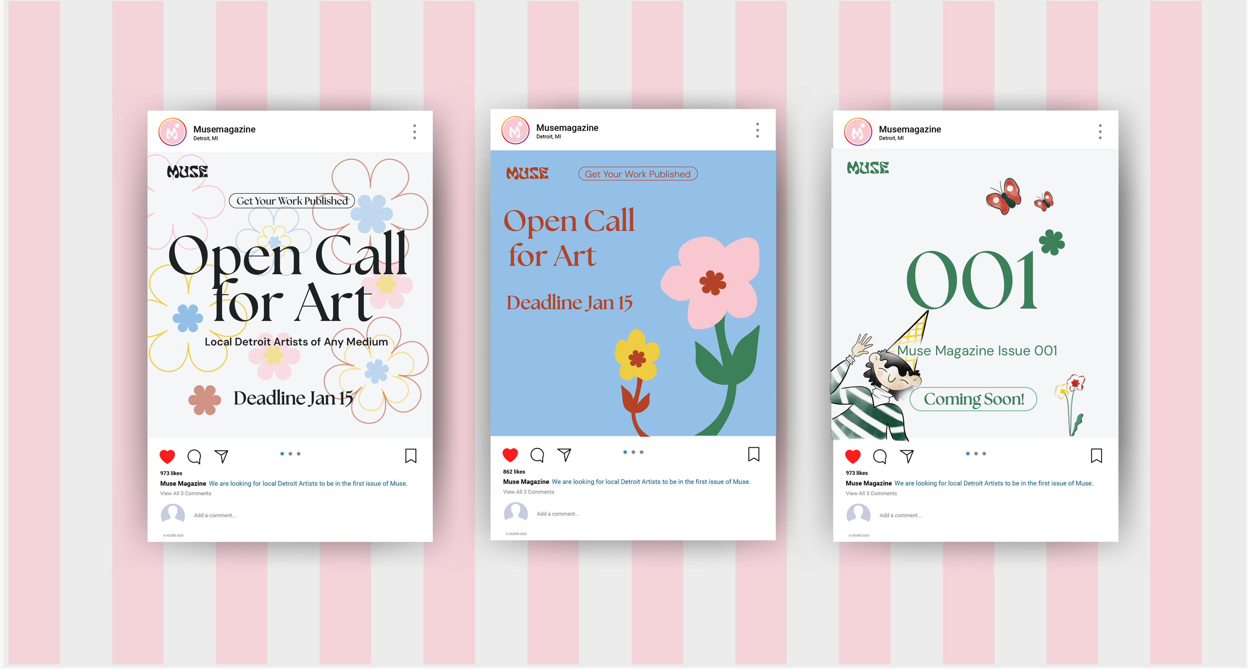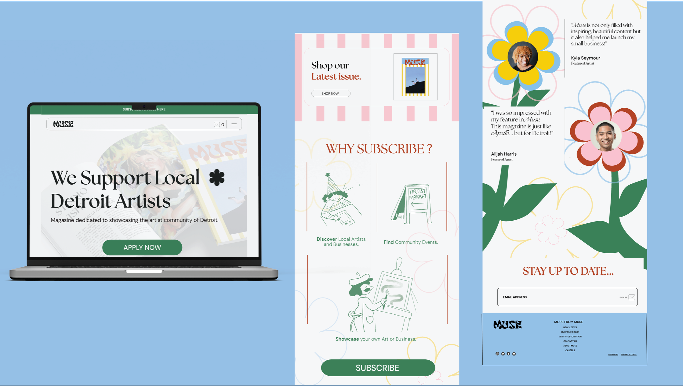 Muse is a magazine brand geared towards a demographic of young creatives looking to break into the art scene. The brand’s mission is to showcase community. Muse is intentionally young, eccentric, approachable, and friendly.