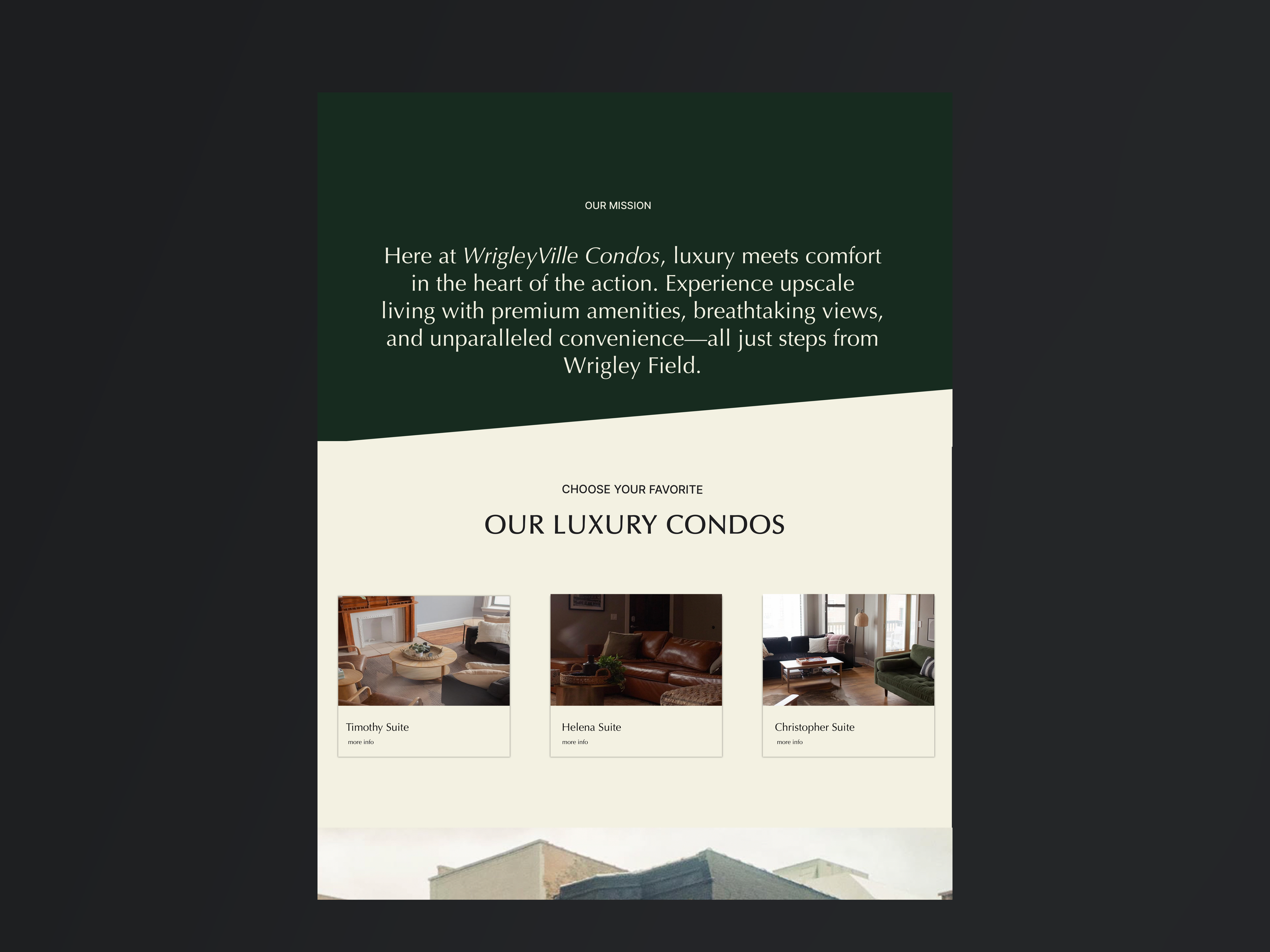 Wrigleyville Condos is a collection of modern luxury residences located in the heart of downtown Chicago, just minutes from Wrigley Field. The project focused on creating a refined brand identity that would appeal to buyers seeking an upscale urban lifestyle.